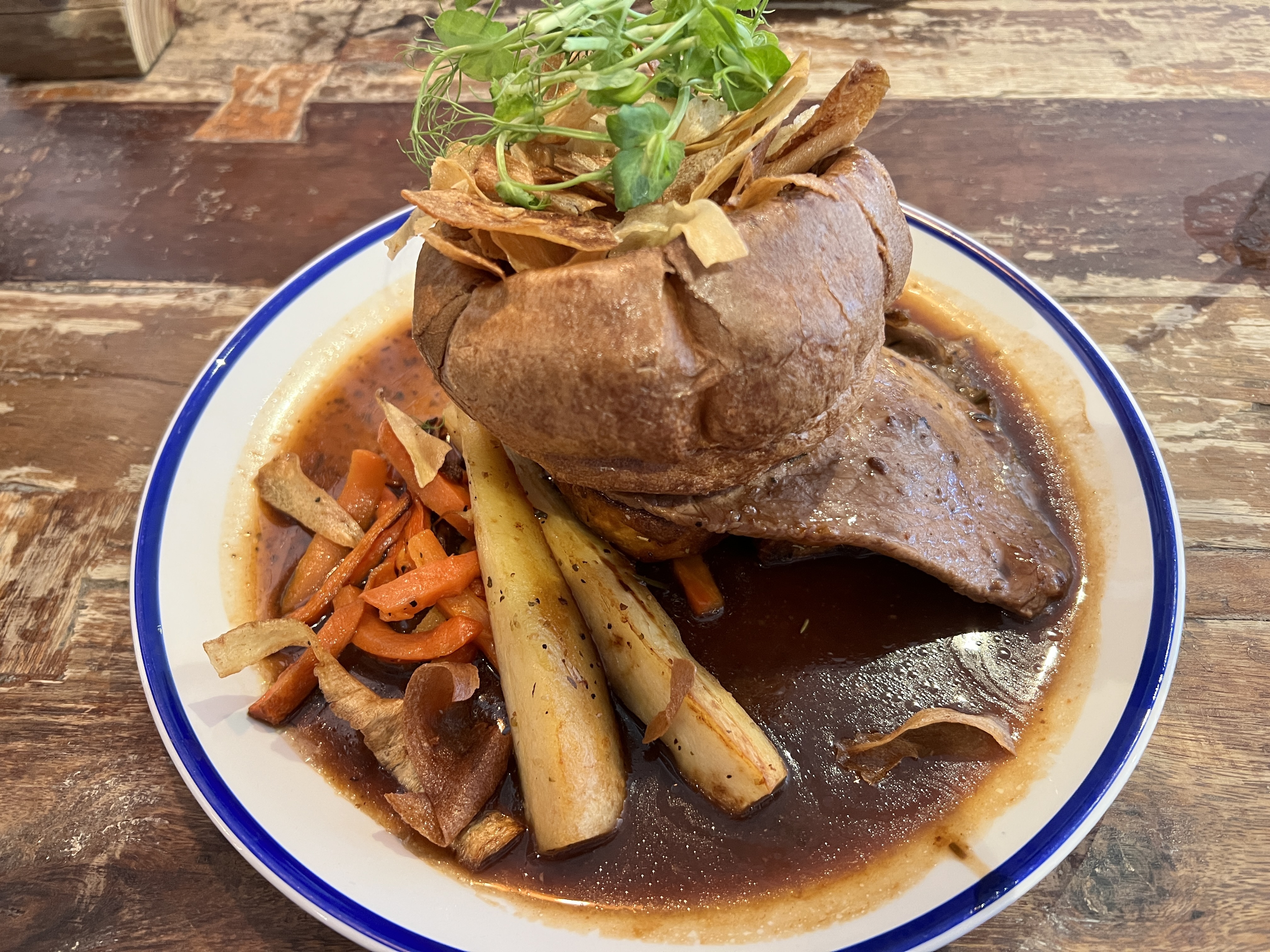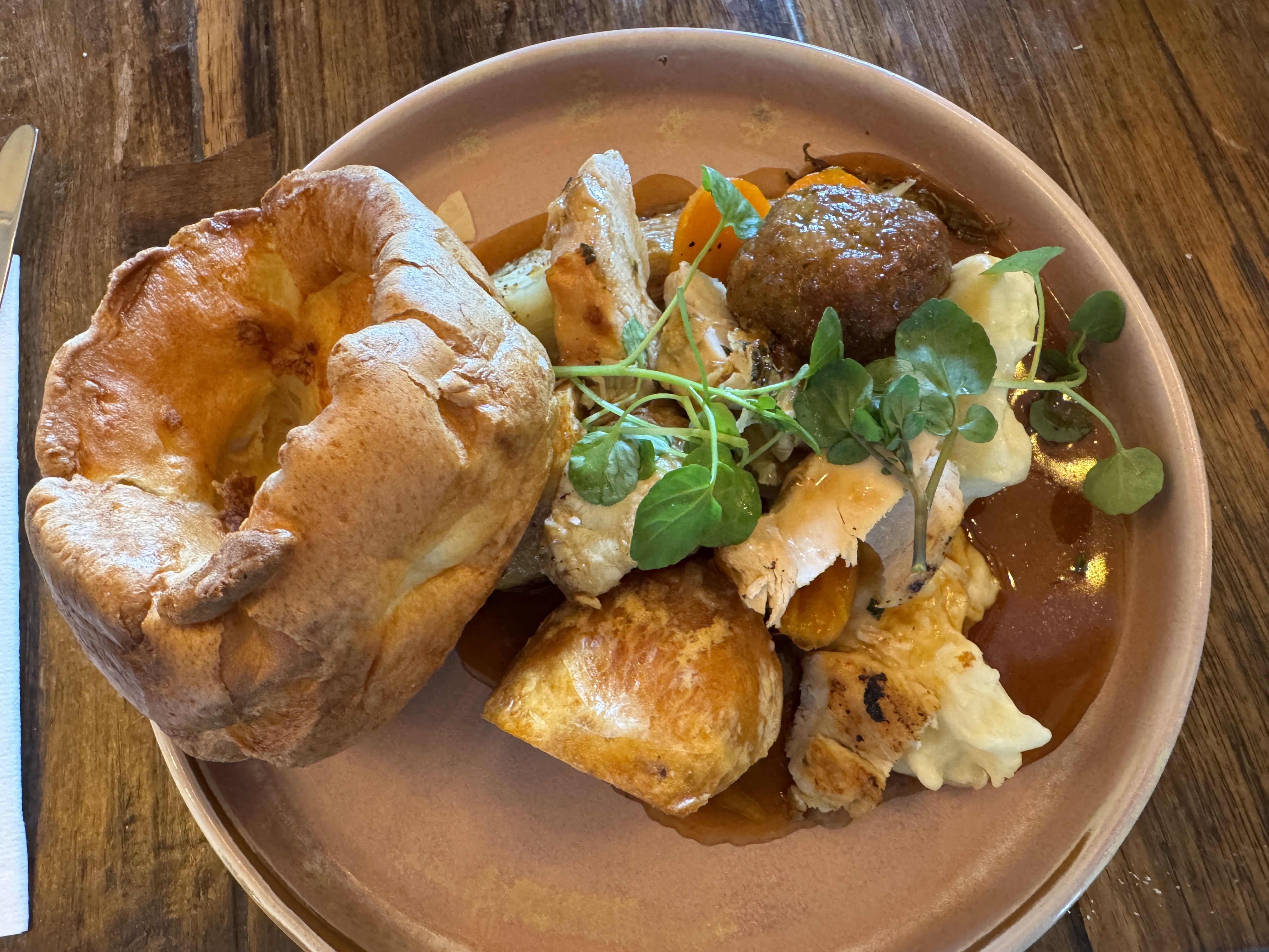 It was a real experience! Everything was so delicious and filling. And the Yorkshire pudding absorbed the gravy so well…