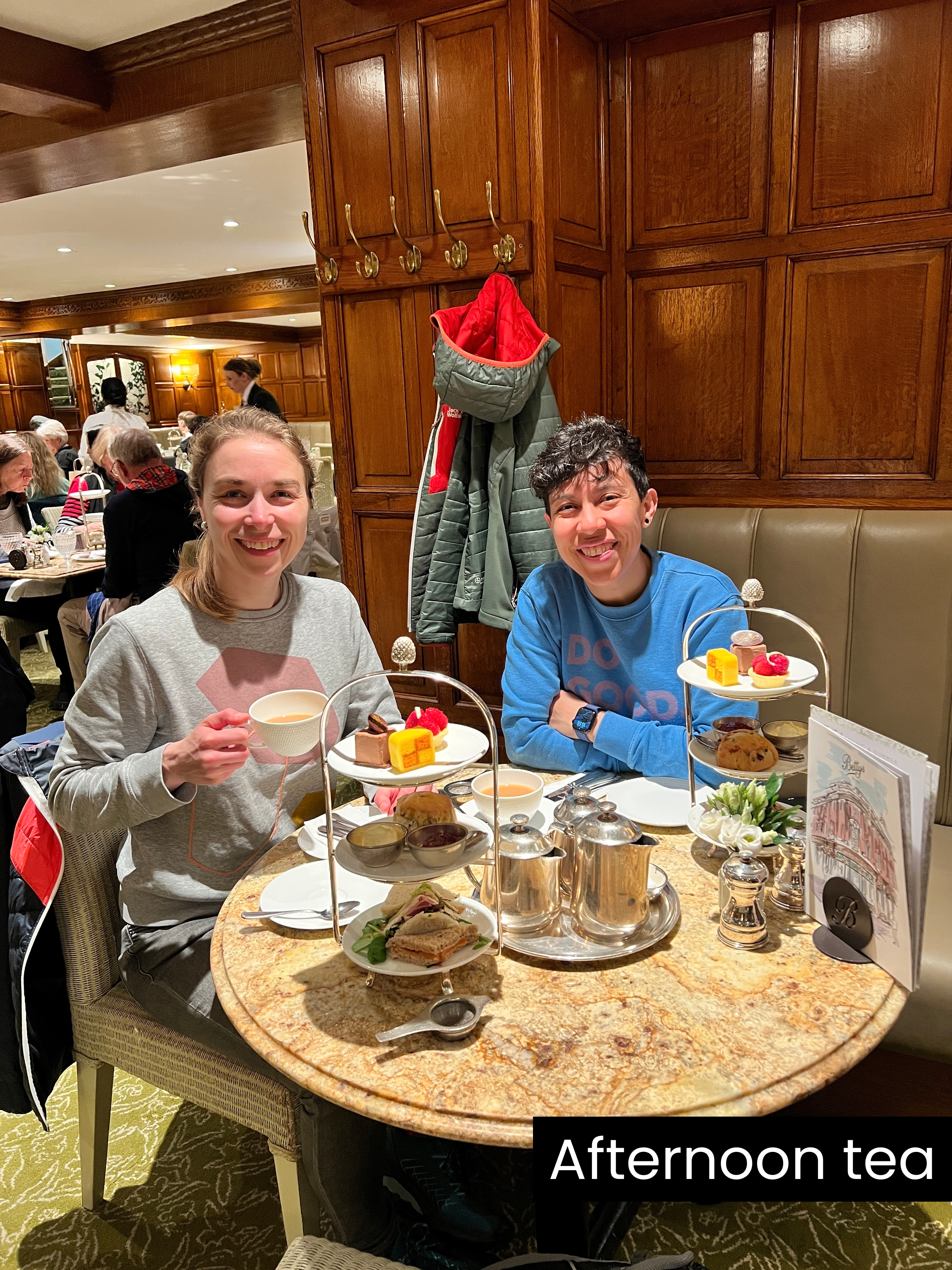 - Bettys Café Tea Rooms York in York. A note about Betty’s: Yes, it is very touristy, however, the scone was very delicious. Especially the clotted cream. Also, we did not go to their fancy tea room, we stayed in the general one and that was just fine. (Google Maps link)